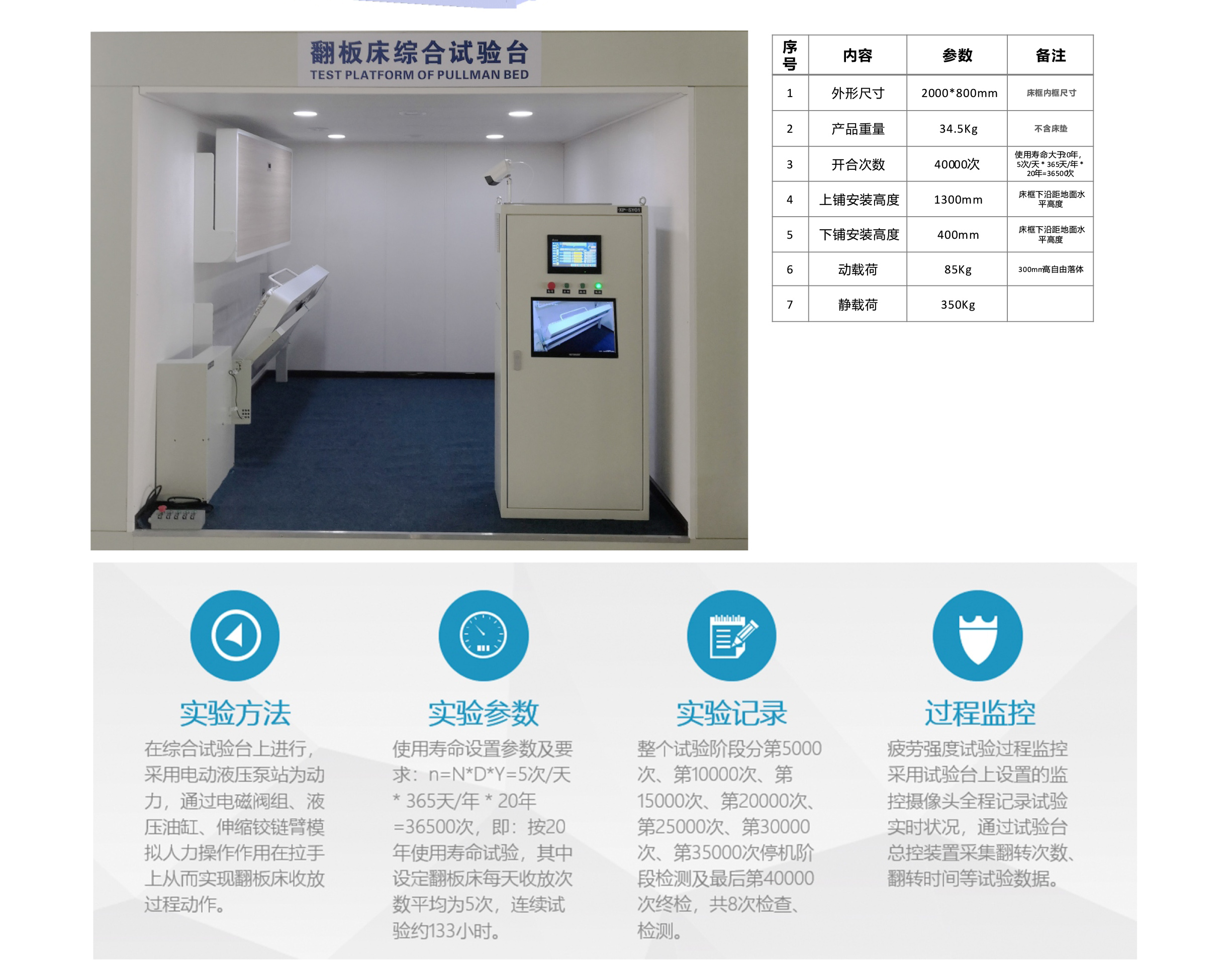 公司自主研發(fā)設計和生產(chǎn)的翻板床綜合試驗平臺、搖擺試驗及動靜載荷試驗平臺正式投入使用;試驗平臺從結(jié)構(gòu)設計、控制系統(tǒng)設計均為我公司自主設計與制作。試驗平臺投入使用后,將能實現(xiàn)翻板床的動載荷、靜載荷、疲勞試驗、搖擺試驗等,通過實時監(jiān)控系統(tǒng)將完全記錄實驗數(shù)據(jù),有效分析產(chǎn)品性能;