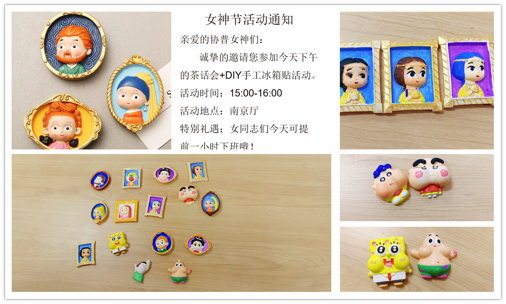 2023年3月8日,值此婦女節(jié)到來(lái)之際,協(xié)普不僅為在廠的各位女士準(zhǔn)備了暖心的生活禮品,還將大家聚在一起舉辦了輕松愉快的手繪活動(dòng)?,F(xiàn)場(chǎng)氣氛歡快,大家悠閑地完成了各自的手繪冰箱貼,活動(dòng)結(jié)束后全體女同志提前下班,開心地結(jié)束了一天的工作。